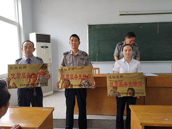 黃德新同志還對(duì)分公司6月份的工作進(jìn)行了總結(jié):6月份分公司在總公司的正確領(lǐng)導(dǎo)下及公安機(jī)關(guān)監(jiān)督下,本著一切為了客戶的思想,狠抓要點(diǎn)問題,取得了一定的成果。通過總結(jié)糾察隊(duì)糾察及各中隊(duì)長的匯報(bào)情況,分公司進(jìn)行了客觀評(píng)價(jià),涌現(xiàn)出了月度優(yōu)質(zhì)先鋒崗及一大批好人好事。但也存在極個(gè)別問題,例如換季后著裝變化的問題等,對(duì)于這些問題,李素軒同志明確指出,必須加大整頓力度,及時(shí)有效解決問題。