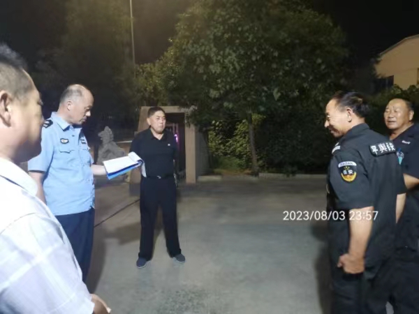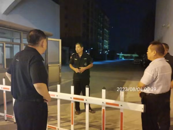 為保障客戶單位的安全,提高隊員夜間值崗的警惕性,2023年8月3日夜間平輿分公司黃經(jīng)理帶領督察隊、辦公室人員對各崗點突擊夜查。