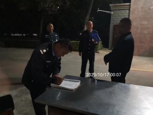 為強(qiáng)化保安員的責(zé)任性、自覺性和警惕性,提高公司的安全管理標(biāo)準(zhǔn),確??蛻魡挝坏纳?cái)產(chǎn)安全。10月16日夜晚,黃經(jīng)理帶領(lǐng)督察隊(duì)及辦公室人員對(duì)各崗點(diǎn)突擊檢查。