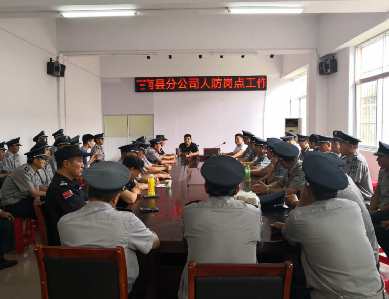 2019年6月21日、22日,汝南分公司人防部在公司大會(huì)議室召開(kāi)近期人防工作總結(jié)暨推進(jìn)會(huì),城區(qū)各執(zhí)勤崗點(diǎn)中隊(duì)長(zhǎng)、班長(zhǎng)及保安員參加。