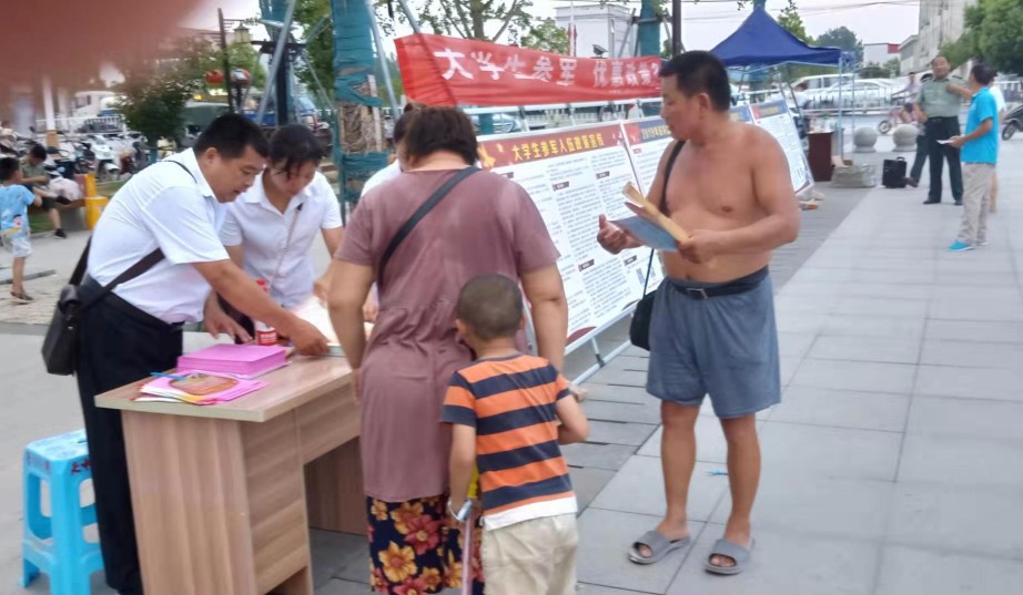 2019年7月26日晚7點(diǎn),汝南縣委、縣政府在天中山文化廣場(chǎng)舉辦慶祝中國(guó)人民解放軍建軍92周年暨最美退役軍人表彰儀式。汝南分公司借此機(jī)會(huì),印制了一批宣傳單,由分公司副經(jīng)理喬運(yùn)強(qiáng)帶隊(duì),在廣場(chǎng)上向群眾宣傳汝南分公司,并招錄復(fù)退役軍人到公司就職。
