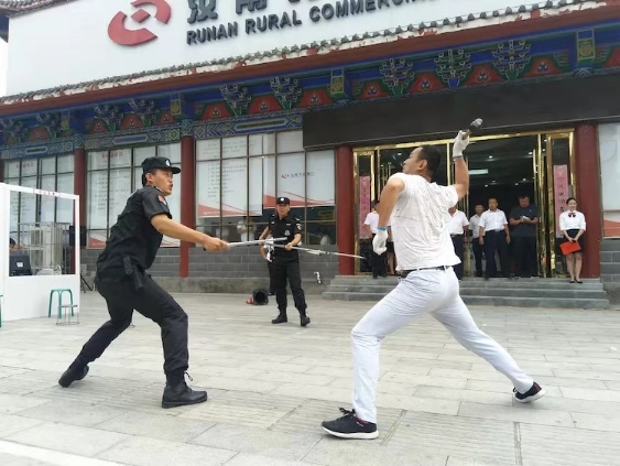 此次演練由汝南守押中隊(duì)表演擒敵拳,并通過實(shí)戰(zhàn)模擬了黑龍江密山金庫盜竊案、網(wǎng)點(diǎn)款箱交接、突發(fā)情況應(yīng)急處理等科目。此次演練圓滿完成預(yù)定項(xiàng)目,得到觀摩領(lǐng)導(dǎo)和客戶單位的一致好評(píng)。演練結(jié)束后由陳福廣教導(dǎo)員總結(jié)講評(píng),他首先充分肯定了此次演練的效果,在七十年大慶到來之際,通過此次演練,震懾了犯罪分子,對(duì)金融行業(yè)自身也是一種檢驗(yàn),同時(shí)有助于加強(qiáng)公安與金融系統(tǒng)、群眾的協(xié)作,建立聯(lián)動(dòng)機(jī)制,在復(fù)雜的社會(huì)條件下最大限度的維護(hù)社會(huì)穩(wěn)定和人民生命財(cái)產(chǎn)安全。