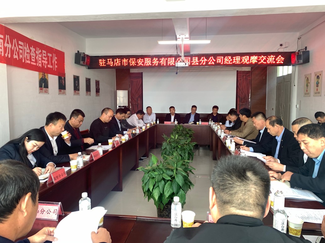 2020年10月23日下午15時許,市公司總經(jīng)理張建輝、副總經(jīng)理鄧繼國和張延春帶領(lǐng)人防、技防、押運和各縣分公司經(jīng)理、負責人一行30余人蒞臨汝南分公司,觀摩團首先實地查看了汝南分公司駐汝南縣二高和汝南縣天中山生態(tài)園的兩個崗點,并對崗點的日常工作提出了寶貴意見和建議。緊接著,觀摩交流團一行人來到汝南分公司辦公地點,查看汝南分公司的辦公設(shè)施配備情況、日常管理情況和分公司架構(gòu)情況。