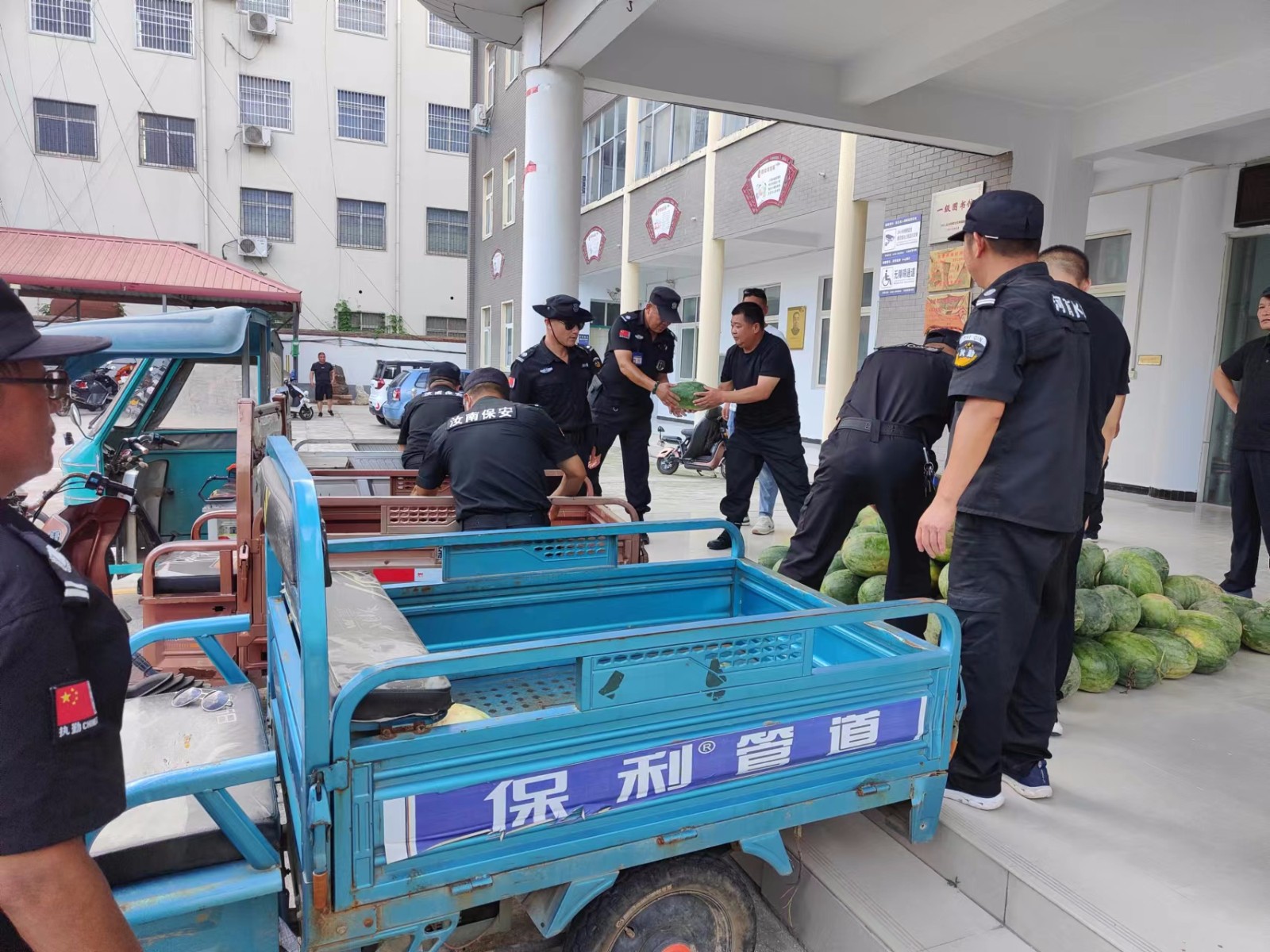 入夏以來,氣溫居高不下,讓在戶外工作的隊員們苦不堪言。為了落實公司“以人為本”的工作理念,汝南分公司集中采購了一萬多斤的西瓜,向高溫酷暑下堅守在一線崗位的保安員們送去清涼。距離較近的崗點,隊員們興高采烈的開著三輪車來公司拉西瓜,較遠的崗點由公司派車分別送到隊員們的手中。