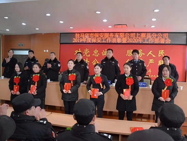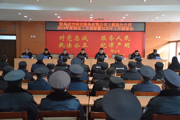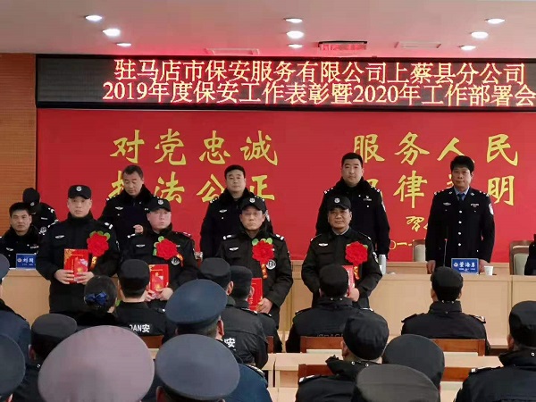 會議首先由駐馬店保安服務(wù)公司上蔡分公司經(jīng)理李合成總結(jié)2019年度保安工作,安排部署2020年度保安工作。