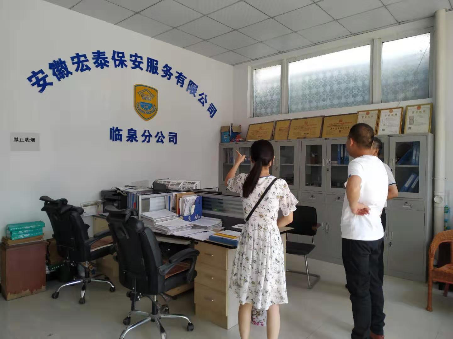 為進(jìn)一步推動(dòng)公司發(fā)展,學(xué)習(xí)先進(jìn)管理經(jīng)驗(yàn),創(chuàng)造良好的交流合作環(huán)境,2019年6月27日,新蔡縣分公司經(jīng)理車自立帶領(lǐng)分公司管理人員一行五人,到安徽省宏泰保安服務(wù)公司臨泉縣分公司考察交流學(xué)習(xí)。臨泉縣分公司對(duì)考察組的到來表示熱烈的歡迎。