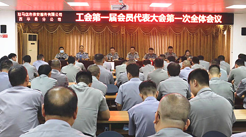 9月25日上午,駐馬店市保安服務有限公司西平縣分公司工會第一屆會員代表大會第一次全體會議勝利召開。