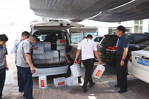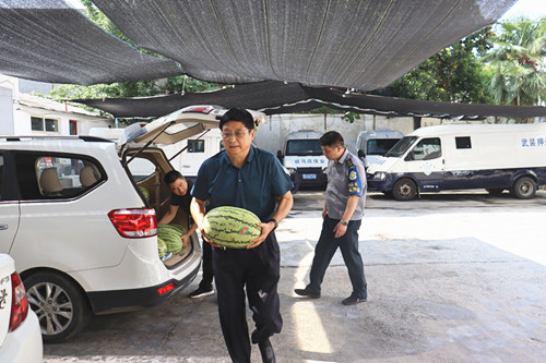 炎炎夏日,酷暑高溫,為關(guān)懷西平押運(yùn)大隊隊員的身心健康,營造良好和諧的工作氛圍。8月4日上午10點(diǎn),西平縣分公司總經(jīng)理高合群、常務(wù)副經(jīng)理周保卿、辦公室主任劉向華、走進(jìn)押運(yùn)大隊為一線隊員送去了礦泉水,西瓜,送去了關(guān)愛,送去了清涼。