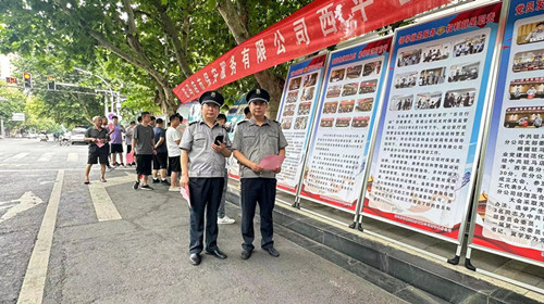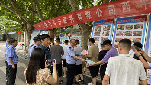 7月24日上午,駐馬店市保安服務(wù)有限公司西平縣分公司,在縣公安局巡特警大隊統(tǒng)一組織部署下,積極開展“保安心向黨、護(hù)航新征程”主題宣傳活動。