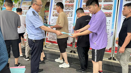 過路群眾紛紛駐足觀看并紛紛伸出大拇指,并詢問如何應(yīng)聘保安員等,縣公安局郭局長,王大隊及分公司高經(jīng)理等拿著宣傳頁給過往群眾散發(fā)著、講解著,把保安的形象展現(xiàn)給廣大群眾。炎熱的夏季,一會兒汗水都侵濕了衣背,但都樂此不疲,滿臉的汗水都樂開了花。