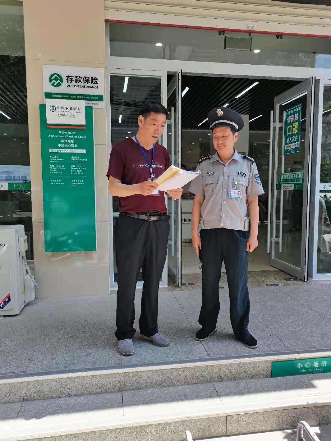 檢查重點(diǎn)對(duì)農(nóng)行一、二、三營(yíng)業(yè)部、工行、建設(shè)銀行、郵儲(chǔ)銀行、中國(guó)銀行等金融網(wǎng)點(diǎn),對(duì)當(dāng)班執(zhí)勤保安員著裝不規(guī)范存在戴特勤帽的、執(zhí)勤日志提前、錯(cuò)后填寫的予以現(xiàn)場(chǎng)糾正,立即整改。同時(shí)要求各崗位執(zhí)勤保安要統(tǒng)一思想、提高認(rèn)識(shí),統(tǒng)一著裝、嚴(yán)明紀(jì)律。